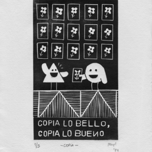 Así mismo, las obras buscan interpelar al espectador a través del compromiso político y social. Por eso tienen un impacto visual a través de un estilo propio y personal. Este estilo de “grabado dibujado” implica generar texturas simples o complejas detallando varios niveles de contrastes.